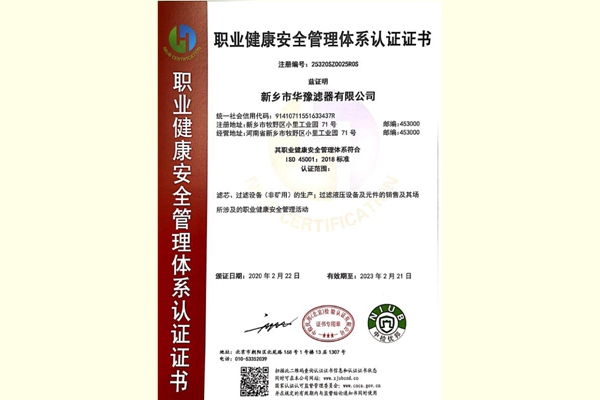 健康安全管理體系證書