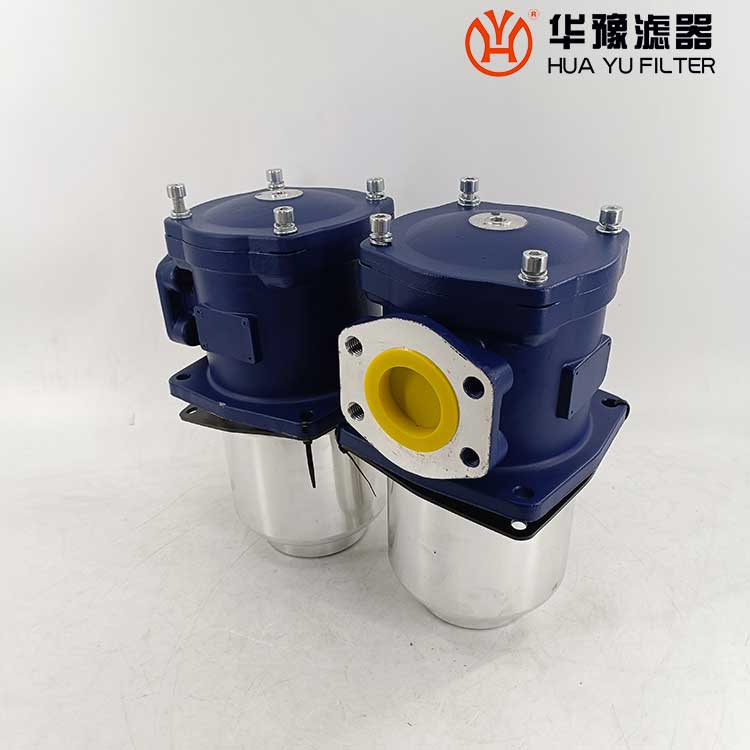 該過濾器的濾芯采用化纖過濾材質,具有過濾精度高,通油能力大,初始壓力損失小,納污量大等優點,并裝有壓差發訊器及旁通閥。當濾芯堵塞到進出油口壓差為0.35MPa時,便發出開關信號,此時應更換濾芯。如果不能馬上停機或無人來更換濾芯,裝在濾芯上部的旁通閥會自動開啟,以保護系統。