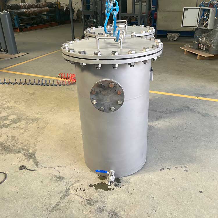籃式過濾器主要由接管、筒體、濾籃、法蘭、法蘭蓋及緊固件等組成。當流體進入有一定規格的濾網的濾桶后,其雜質被阻擋,而清潔的濾液則由過濾器出口排出,當需要清洗時,只要將可拆卸的濾桶取出,處理后重新裝入即可,因此,使用維護極為方便?;@式過濾器具有結構簡單,阻力小,排污方便等特點。適用介質可為水、油、氣。一般通水網為18~30目,通氣網為40~100目,通油網為100~480目,可按用戶要求制作濾網,介質溫度:≤200℃。