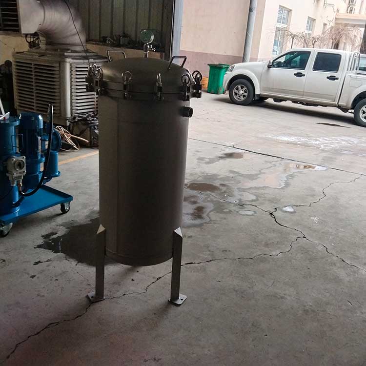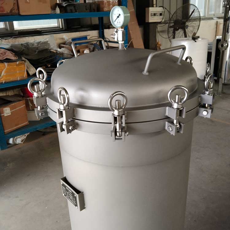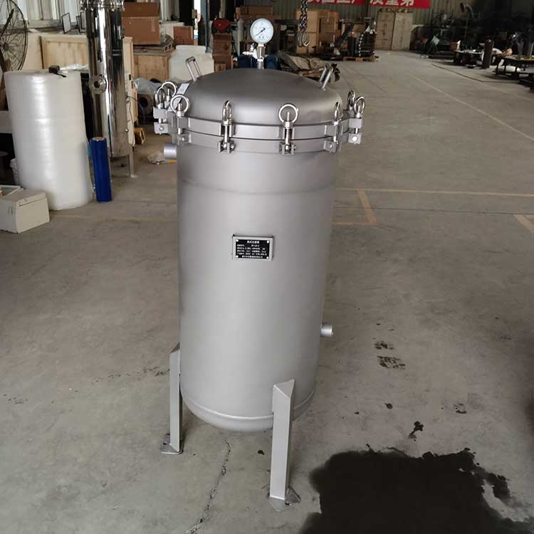 袋式過濾器是一種壓力式過濾裝置,主要有過濾筒體、過濾筒蓋和快開機構、濾袋、加強網等主要部件組成,濾液由過濾機外殼的旁側入口管流入濾袋,濾袋本身是裝置在加強網籃內,液體滲透過所需要細度等級的濾袋即能獲得合格的濾液,雜質顆粒被濾袋攔截該機更換濾袋十分方便,過濾基本無物料消耗。袋式過濾器具備構造合理、密封性好、流通才能強、操作簡便等諸多長處。尤其是濾袋側漏機率小,能正確地保障過濾精度,并能快捷地改換濾袋,使得操作成本下降。濾器內外表面采取機械噴砂拋光解決,平均、易清洗。我們知道,袋式過濾器所采取的過濾方法是側進側出的方法,也可以采取側進底出的方法,通過管道中的壓力將過濾液體介質壓入或抽入袋式過濾器桶體,要過濾的液體介質經由電拋光沖孔支持濾藍承托的過濾袋的過濾,發生變化的固液分別到達液體介質被過濾的結果。